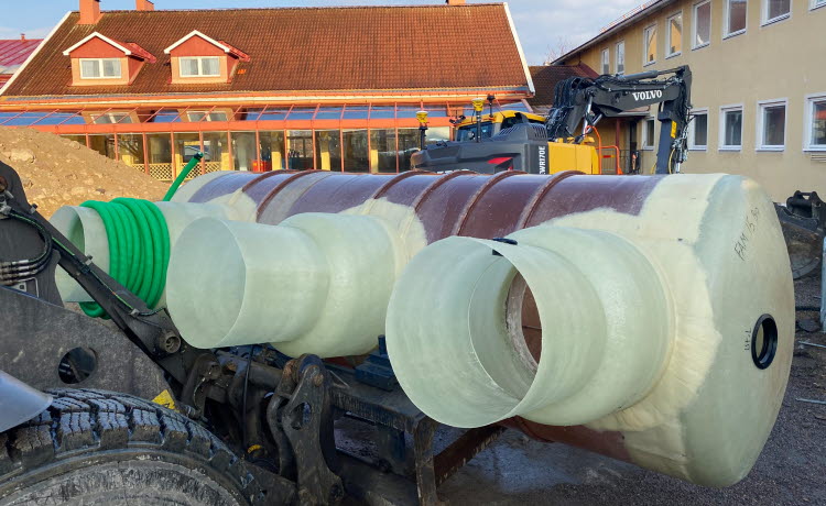 Grävningarna utanför hus 03 och 04 fortsätter och köket har nu också fått en ny fettavskiljare.