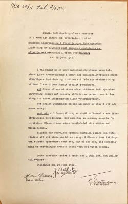 Cirkulär från Kungliga Medicinalstyrelsen som 1941 inkommit till provinsialläkare Synnergren i Alfta. Foto: Regionarkivet