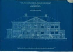 Ritningen visar det gamla landstingshuset, som än idag finns kvar vid Joe Hill-platsen söder om nuvarande regionkontoret. Till vänster i ritningen syns Folkets hus. Ritningen är från 1940-talet, men tyvärr inte signerad. Vi vet dock att det var Sten Dalén som var arkitekt och att den nya förvaltningsbyggnaden stod klar 1949. Redan under 1960-talet började landstinget växa ur byggnaden till följd av nya ansvarsområden och ytterligare ett nytt förvaltningshus stod klart 1975, denna gång på Kyrkogatan 4.