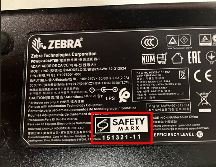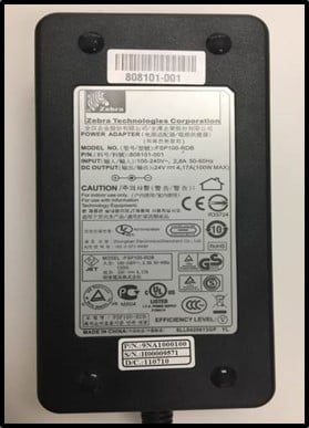 D/C-nummer på strömadapter från Zebra