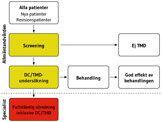 Nedan visas en översikt av hela flödet från screening till remiss för patienter med orofacial smärta och käkfunktionsstörning.